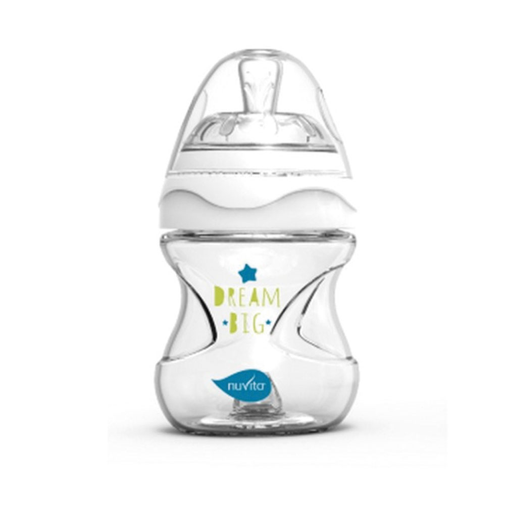 Sistema "riduci coliche"; attraverso la valvola speciale, l'aria entra dalla base della bottiglia ed evita di mescolarsi al latte, quindi il bambino si alimenta senza ingerire aria. Forma ergonomica, facile da afferrare Facilita l'alternanza seno-biberon Tettarella piatta e allungata per facilitare il naturale movimento peristaltico della lingua L'ampia superfice a contatto con le labbra aumenta la sensazione del contatto con il seno materno. Tettarella flessibile a 360 gradi. Finitura "Skin-like" ad effetto pelle che ricorda il capezzolo della mamma Tettarella ad 1 goccia (indicata da 0+)