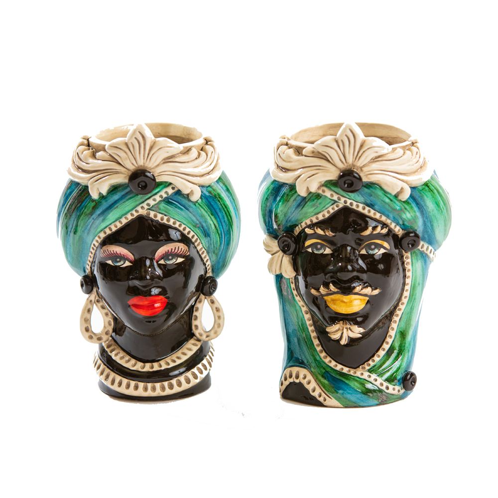 Vasi decorativi realizzati a mano dagli artigiani ceramisti di Caltagirone Dimensioni prodotto 40cm; Disponibili in varie misure e colori; Venduti a coppia (uomo e donna) Quantità disponibili di questo prodotto n°10 pezzi