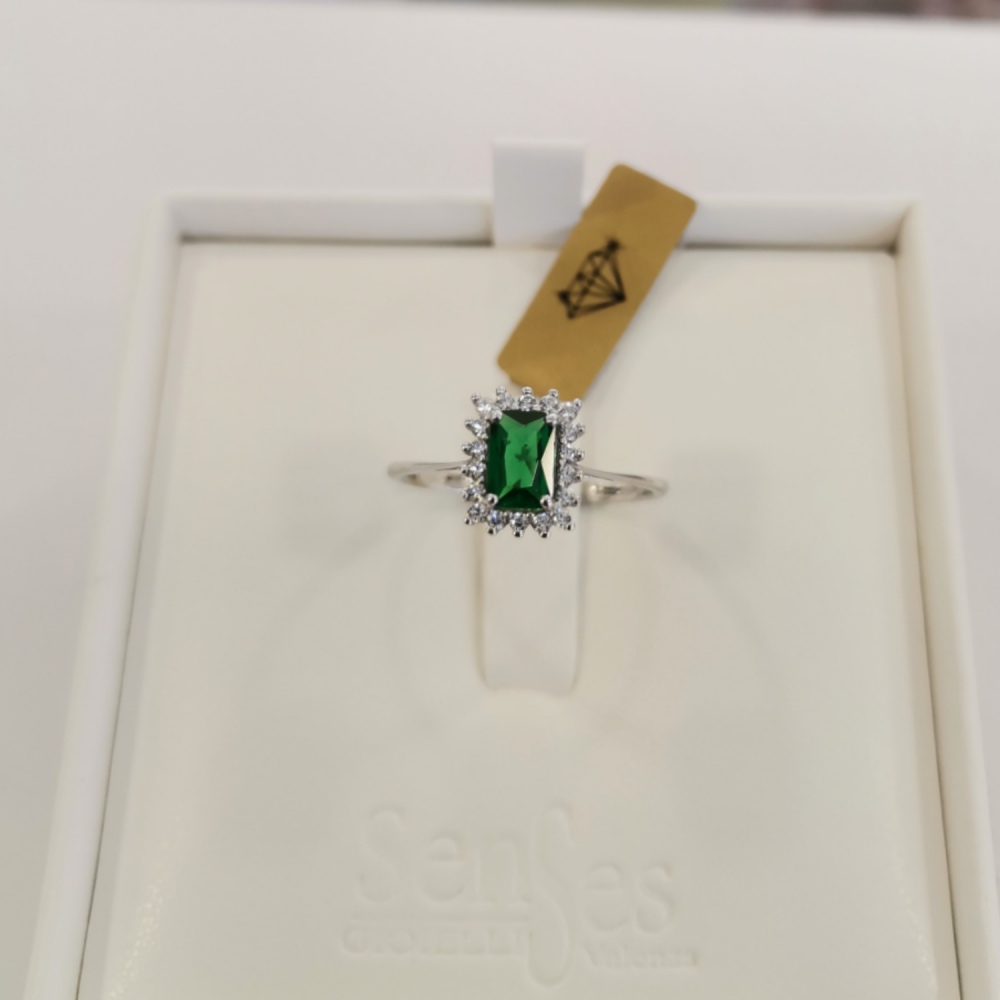 Anello in oro 18 k con un zircone verde e contornato da altri bianchi *spedizione gratuita