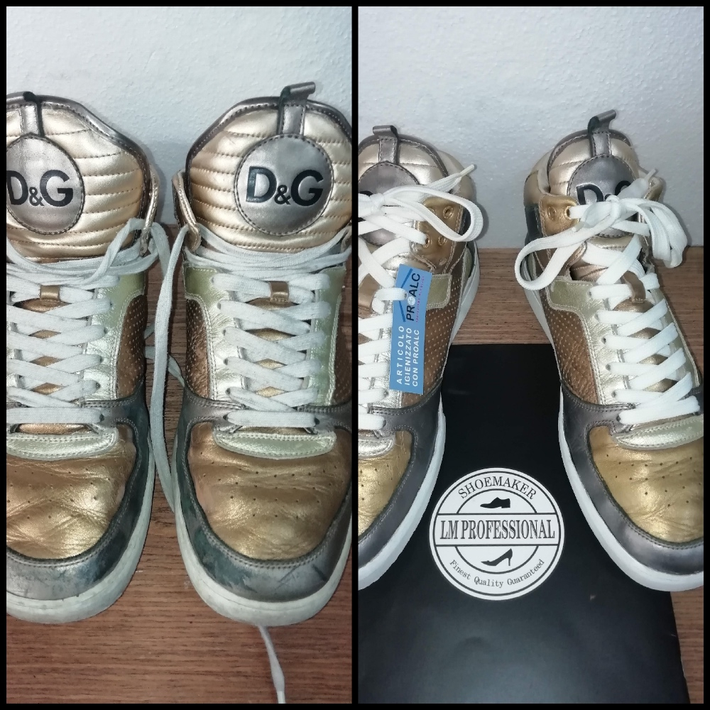Igienizzazione con PROALC SHOES e ripristino colore con i prodotti professionali LM Professional.