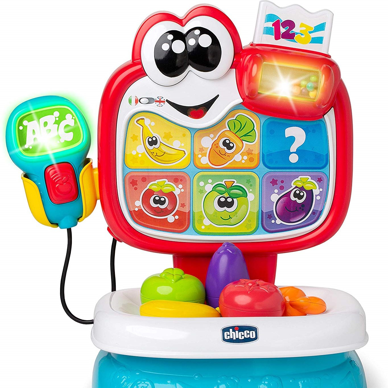 Giocattolo educativo elettronico, contenuto bilingue su frutta, verdura, colori, ricette, e frasi