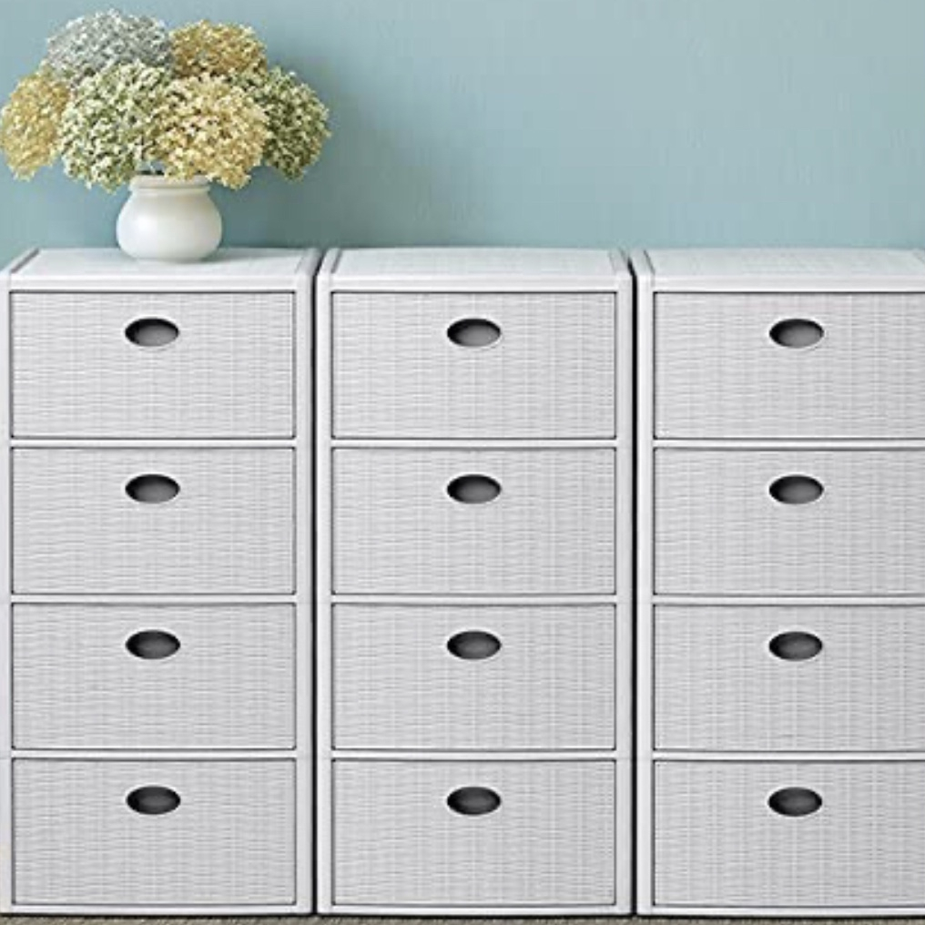 Cassettiera porta tutto ideale in bagno e in cucina, consigliata per attività di pubblico esercizio come bar ristoranti, hotel ecc… Ideale per uso giornaliero. Struttura in dura plastica in colore bianco trama finto vimini. Dimensioni: altezza 80 cm, profondità 37 cm, larghezza 39 cm altezza del singolo cassetto 18 cm.