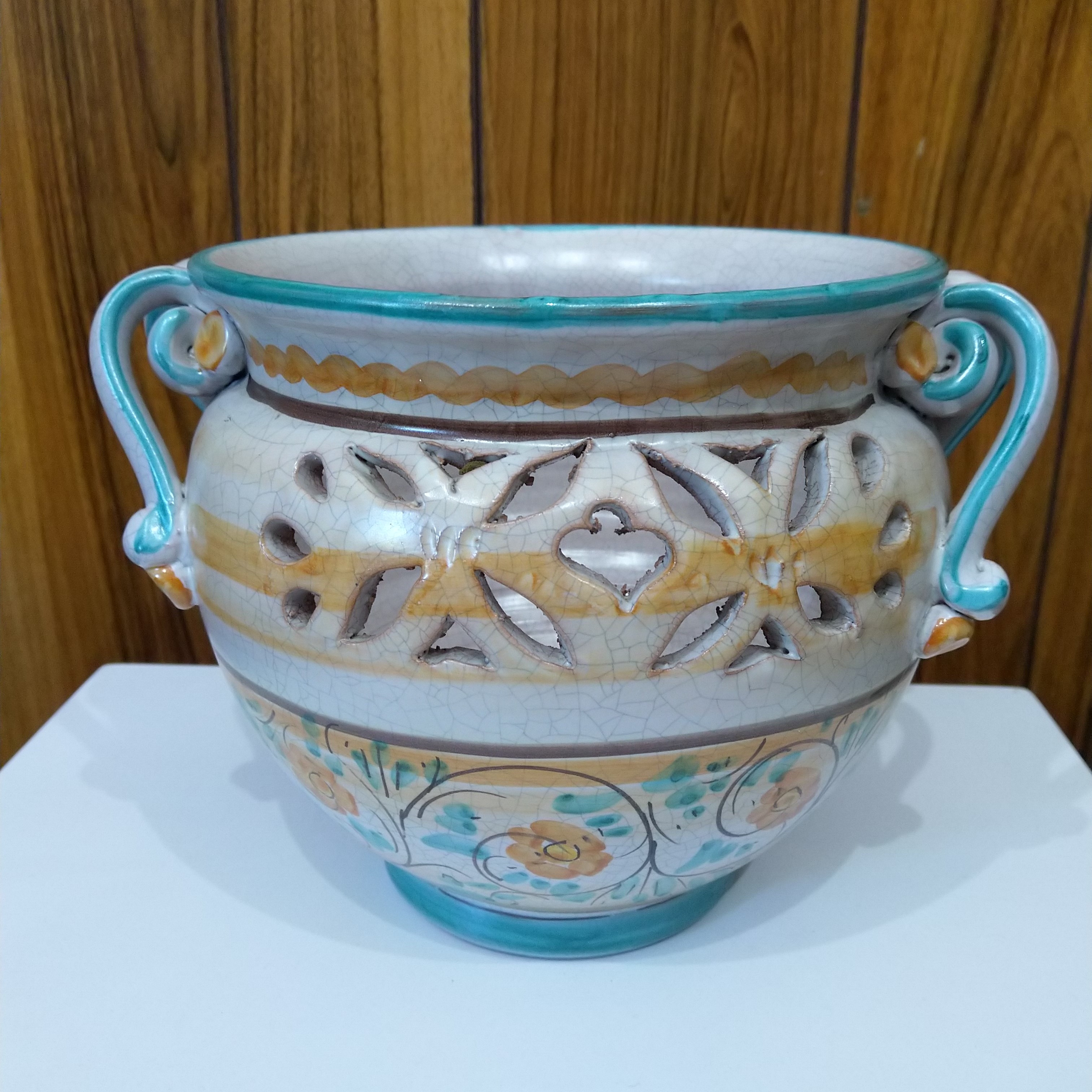 Vaso traforato in ceramica d.20