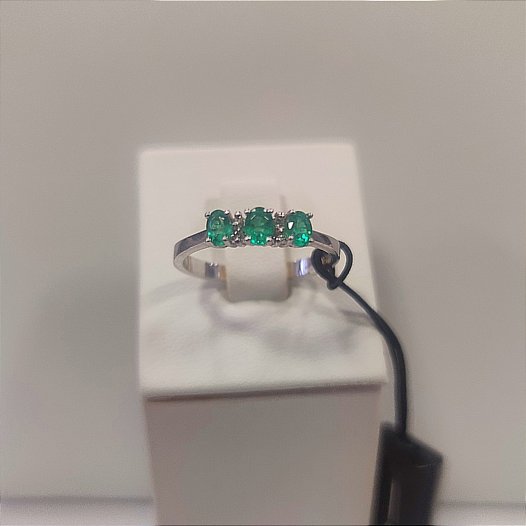 super promozione Anello in oro 18k grammi 4,7 Con 3 smeraldi da 47 punti totali E 4 punti di diamanti Colore F Purezza vs *spedizione gratuita