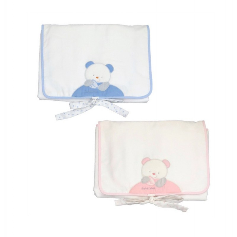 Fasciatoio da viaggio in spugna 100% cotone completamente lavabile, con cuscino removibile. Comode tasche portaoggetti, per portare tutto l’occorrente per il cambio del bambino. Pratico da mettere in borsa. Disponibile in diversi ricami e colori