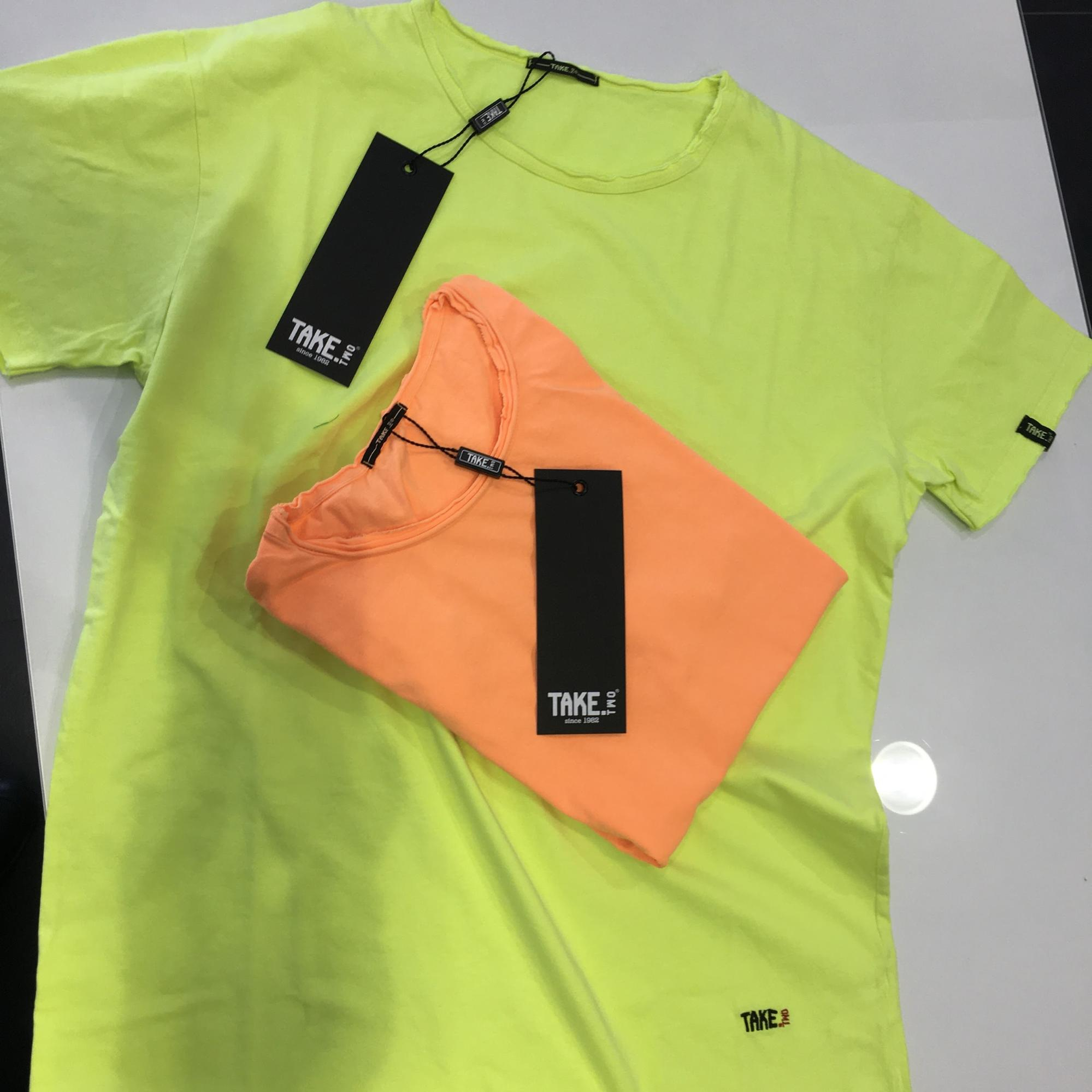 T-shirt fluo giallo e arancione take two uomo