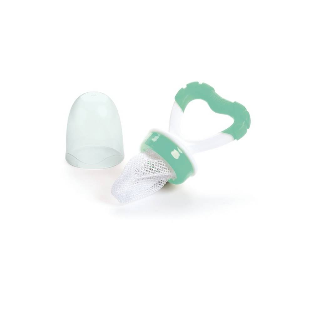 Questo indispensabile accessorio agevola lo svezzamento del bambino in modo naturale e sicuro abituandolo ai nuovi sapori ed alle diverse consistenze dei cibi solidi. Si utilizza con tutti gli alimenti: frutta, verdura, carne, pesce, pane, biscotti: basta tagliare l'alimento a pezzettini ed inserirlo nella retina. Il bambino mangerà da solo evitando rischi di soffocamento da bocconi troppo grossi. Nel periodo della dentizione, inserendo un po' di ghiaccio o pezzetti di frutta ghiacciata può dare sollievo alle gengive infiammate. E' igienico e sicuro: la retina è in nylon per alimenti di alta qualità, la chiusura è ad avvitamento. Il coperchio ne preserva l'igiene e lo rende adatto anche per quando si è fuori casa. Inoltre l’impugnatura in gomma è comoda da afferrare ed è un efficace massaggiagengive con rilievi diversi da mordere per alleviare il fastidio delle gengive infiammate durante la fase di crescita dei primi dentini.