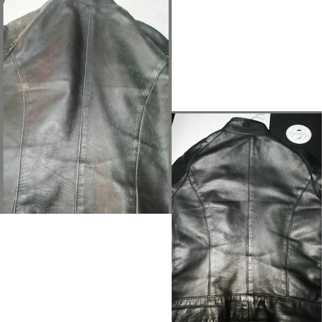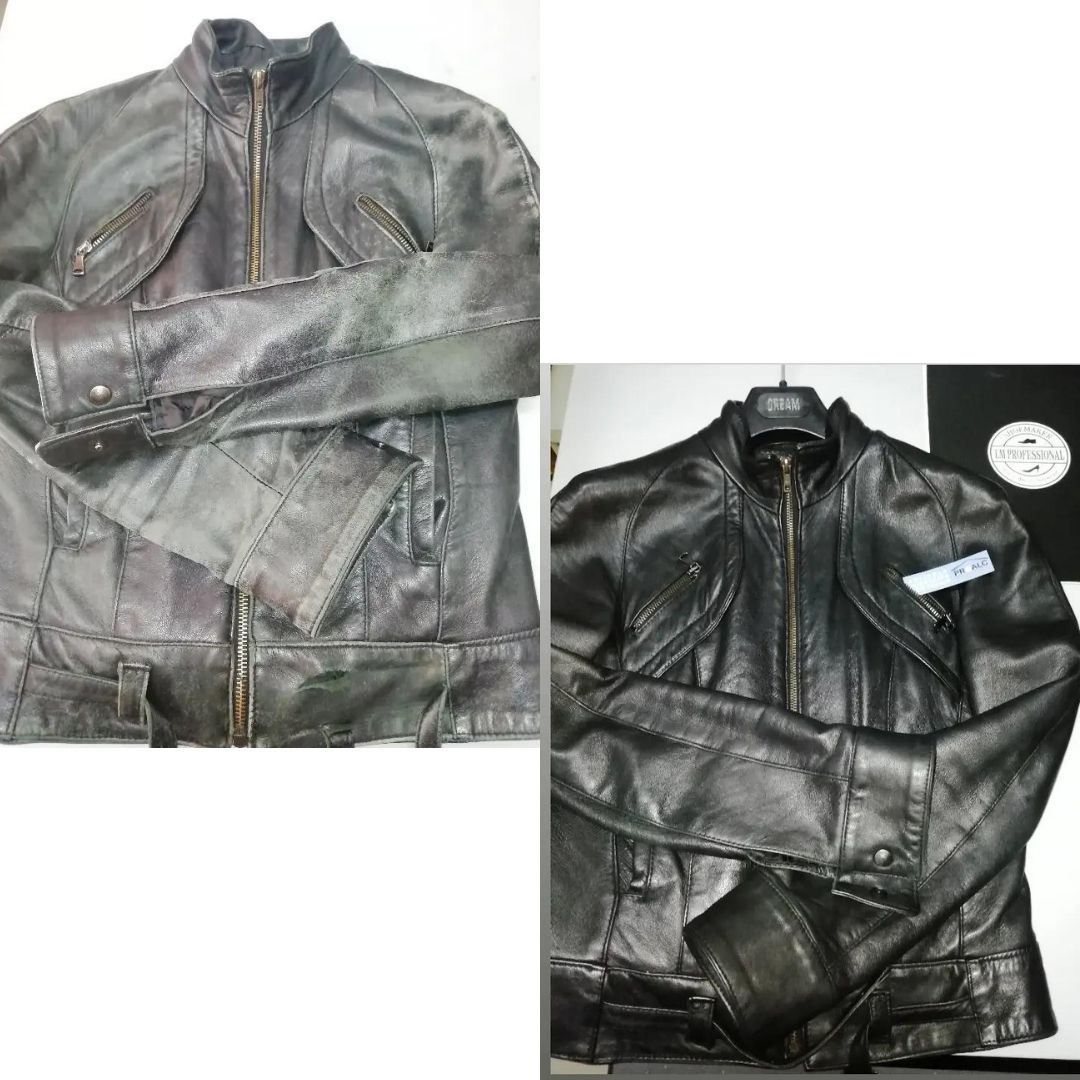 Giubotto in pelle igienizzato con PROALC SHOES, ripristino del colore e nutrizione della pelle con i prodotti professionali LM Professional. Il prezzo può variare a seconda dell’oggetto da trattare.