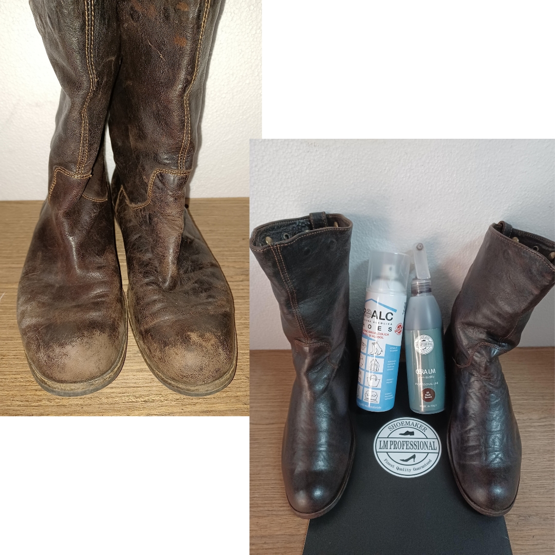 Igienizzazione con PROALC SHOES e ripristino pellame con i prodotti professionali LM Professional. Il prezzo può variare a seconda delle calzature da trattare.