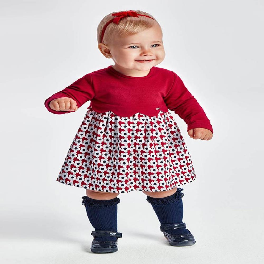 Vestito Mayoral in maglina rosso + tessuto fantasia rosso art.2911-096 Disponibile nelle taglie 6mesi,9mesi,12mesi,18mesi,24mesi.