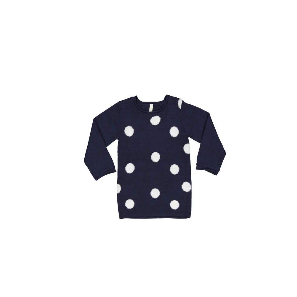 VESTITO IN TRICOT MISTO LANA CON DISEGNO JACQUARD SUL DAVANTI A FANTASIA POIS. MISURE DISPONIBILI: 6-9-12-18-24-30 MESI
