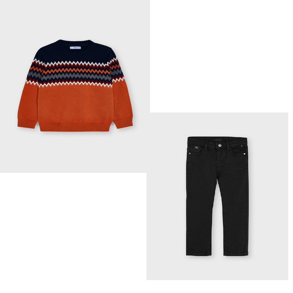 Completo maglia jacquard cotone Art. 4355-080+pantalone 5 tasche Art.4563-085 Taglie disponibile 2anni,3anni,4anni,5anni,6anni,7anni.
