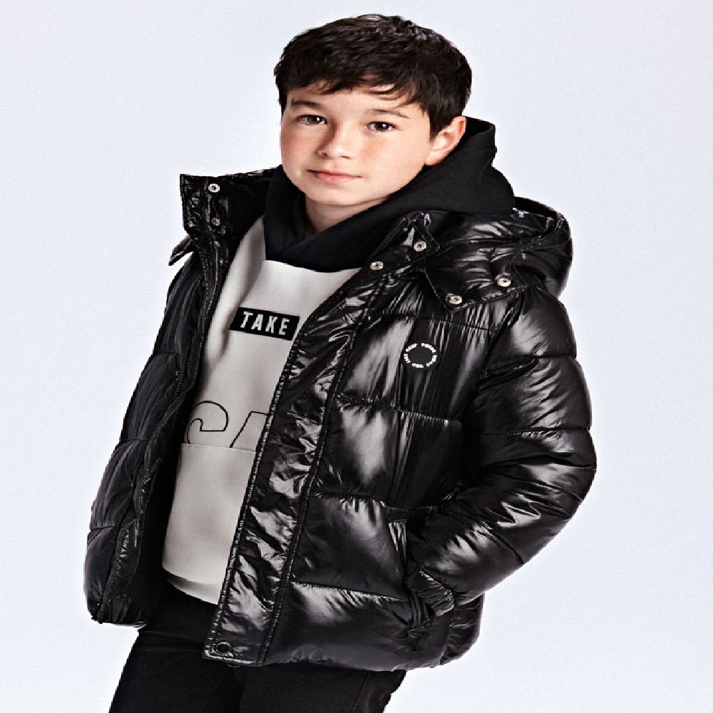 Giubbino ragazzo piumino effetto lucido nero interno pile Taglie 8anni,1anni,12anni,14anni,16anni.